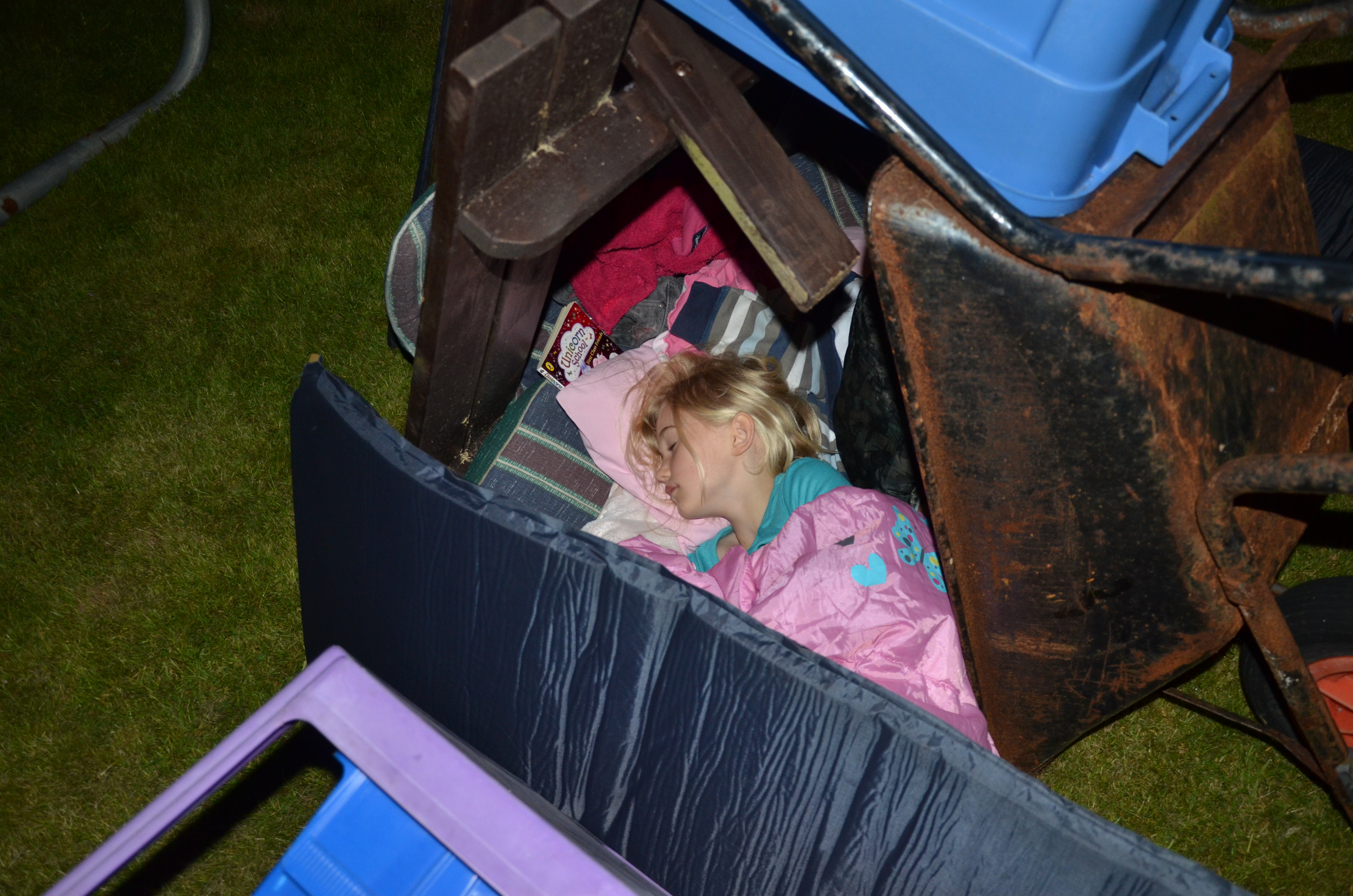 In Urban Jungle Exploring Ben and Zoe built a camp in the garden using whatever they could lay their hands on. But what use is a camp if you can’t sleep in it? How could Dad resist when they asked so nicely and as Mo was out I couldn’t get a second opinion so I said yes until Mum comes home: