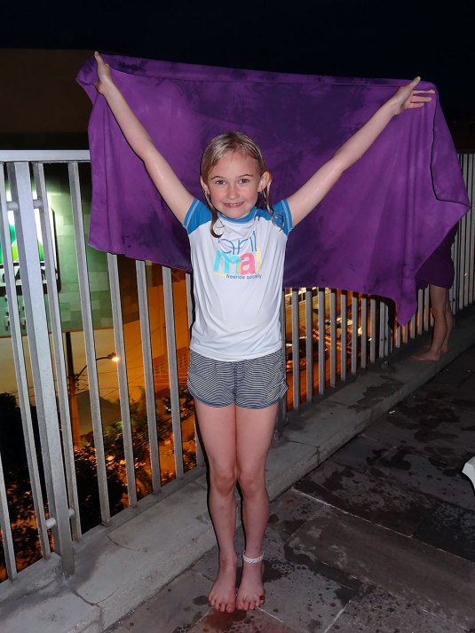 We went in the swimming pool at 6 o’clock, it was very cold.