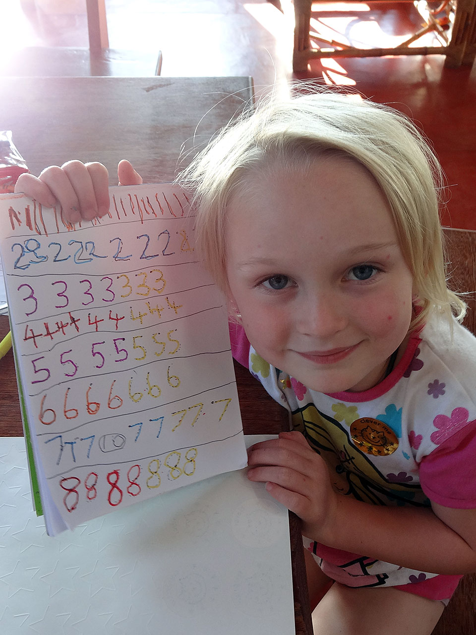 Lara : Today I’ve done lots of hard work stuff and I’ve done this book and loads of numbers. 8’s I’ve done and 7’s I’ve done and …. what are they Mummy?
