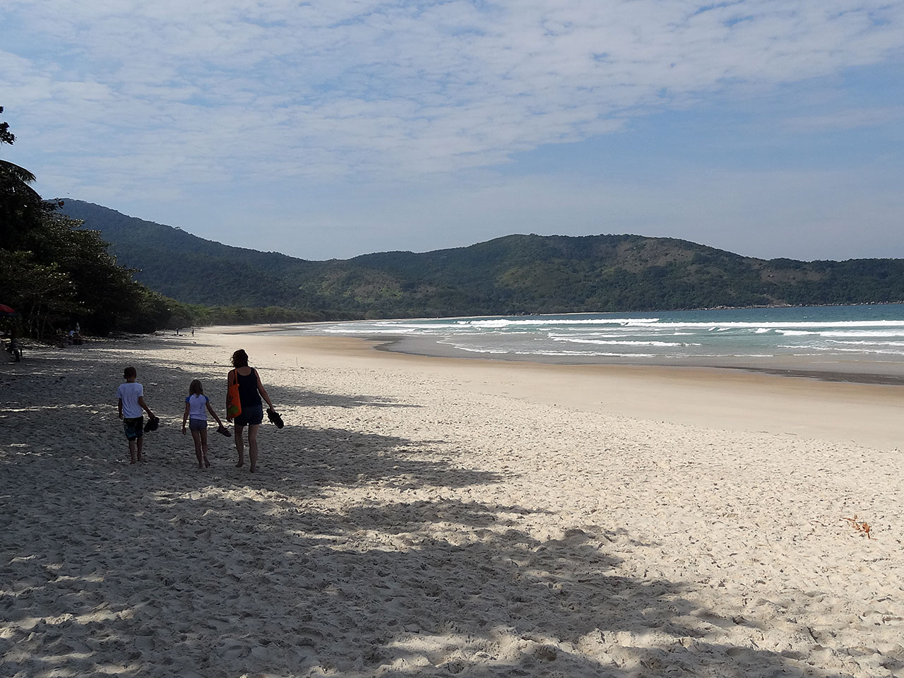 We went by boat one day to one of the island’s most beautiful bays, Praia Lopez Mendez. Fabinho, who’d met us and brought us to our beachhouse from the pier when we arrived, took us by boat to Pouzo beach from where we walked a 20 minute trail over the hill and through forest where we spotted small monkeys to Lopes Mendes, a 2km long, fabulous wide white sandy bay, backed by rainforest and edged by great climbing boulders, said by many to be the most beautiful in Brazil.