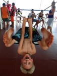 I had been thinking about the fact that the kids are free to wander the boat which is pretty small and well contained and I’m especially relieved that no-one abducted or murdered my kids as I slept soundly in my top deck suite and they shared the hammock deck with 150 locals!!