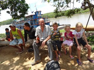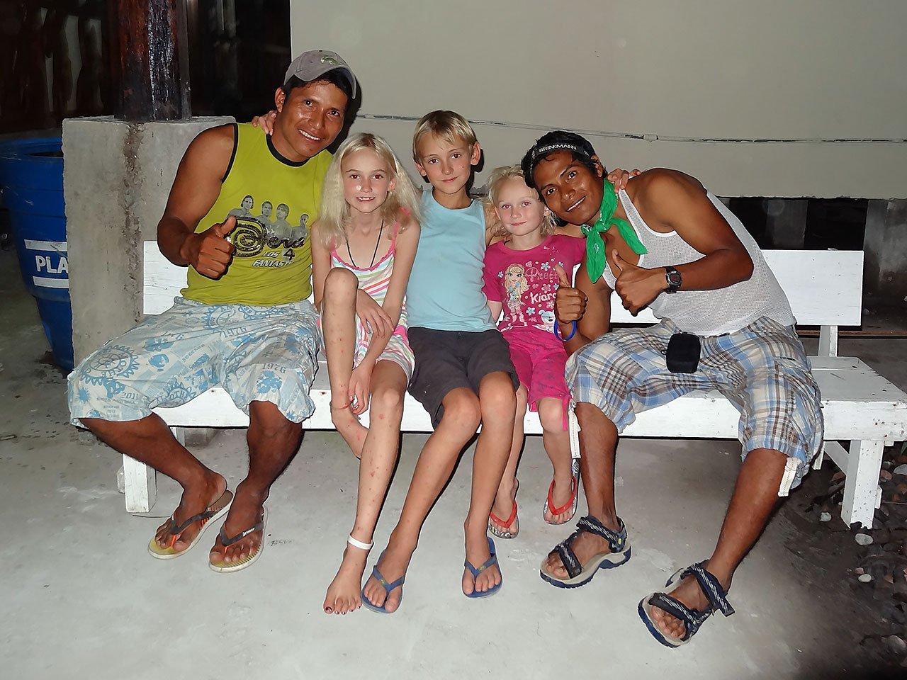 Bizarrely the man at the passport office is the same man from Santa Rosa at the tri-border point where we left Brazil via Columbia. He’s been transferred and has gotten here before us by speed boat. He recognises the family and stamps the kids arms again like he did when we arrived in Peru.