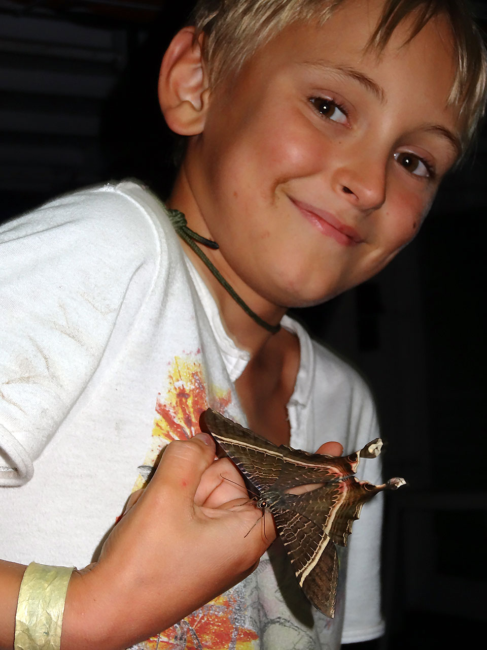 One night on one of the big boat on the Amazon. This giant moth appeared. It seemed to like people and kept landing on us!