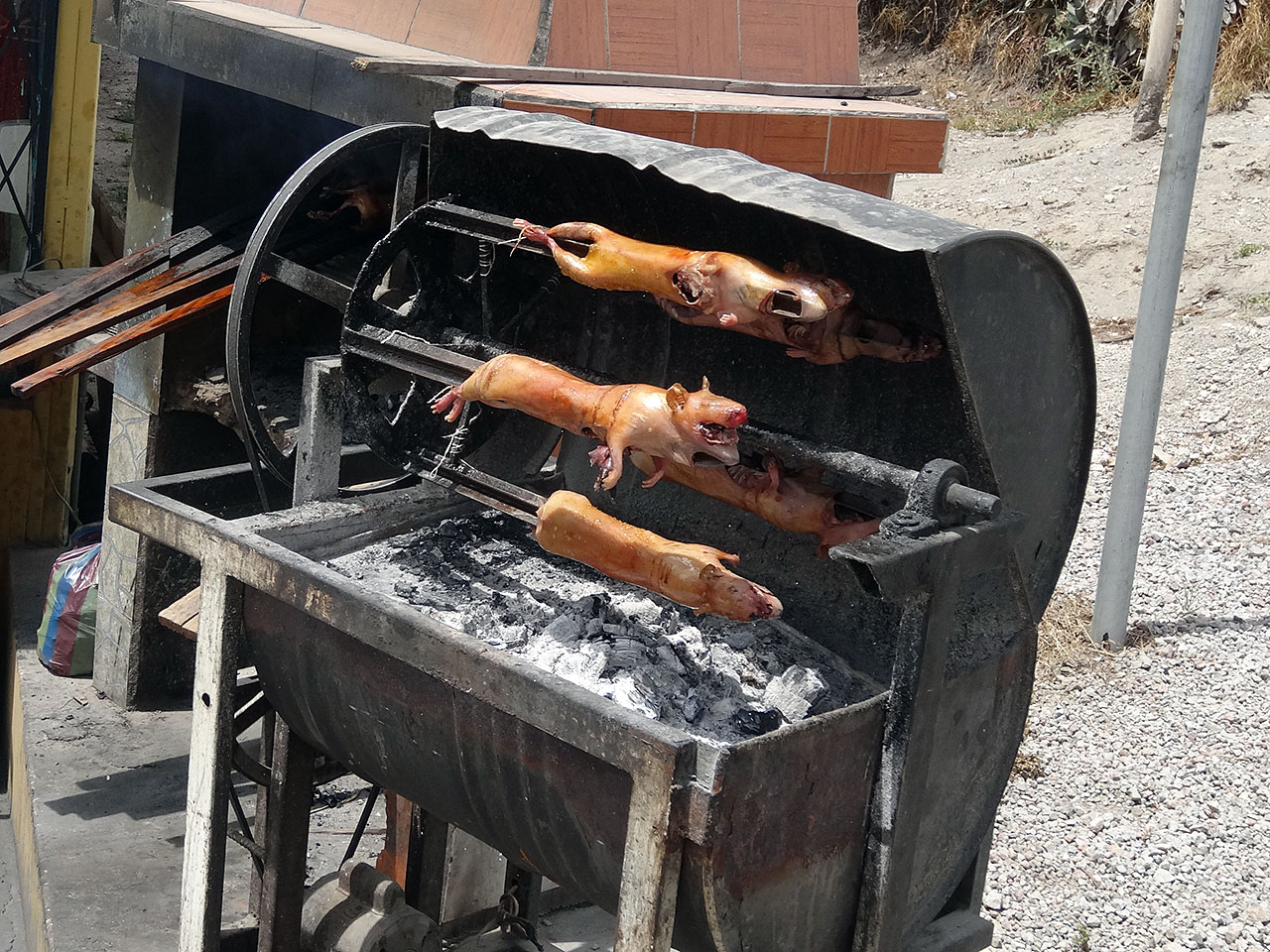 The other thing that’s popular is eating guinea pig – they are often being roasted on a spit by the roadside in Ecuador and they look awful!
