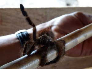 On our small boat coming up the Napo we saw this tarantula – it was right above out heads – huge and hairy and when Frank got it on a stick it to get rid of it, it waved to us! Did you know Tarantulas aren’t actually very poisonous and don’t want to bite unless they have to !