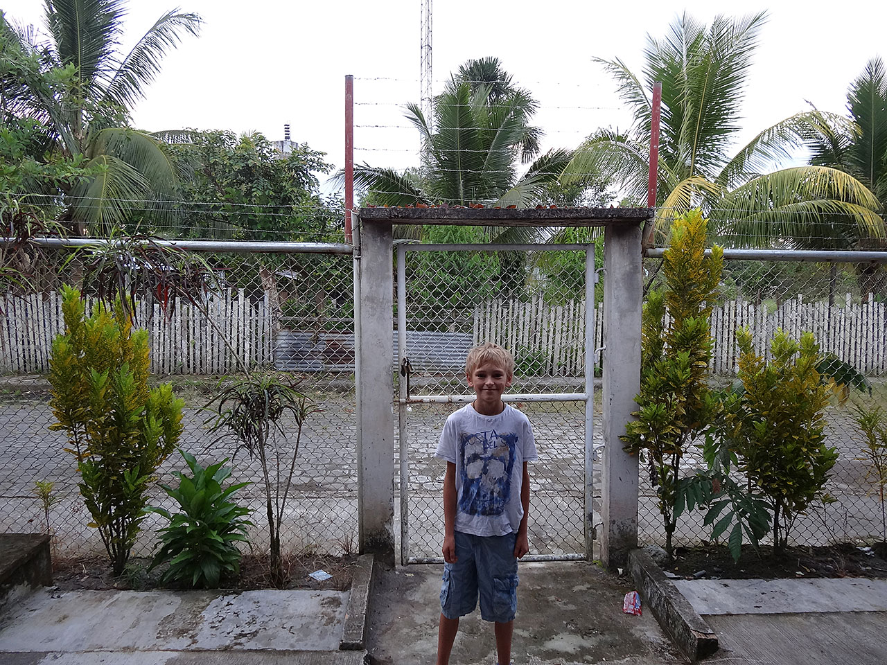 He’s not that long and comes back to take us along the riverside some 10 minutes to the surprisingly large and lovely Hotel Le Mision, complete with three swimming pools, waterslide and considerable menagerie of semi wild animals wandering about! Martin has haggled for a great rate and very pleasant family room overlooking the pools and river.