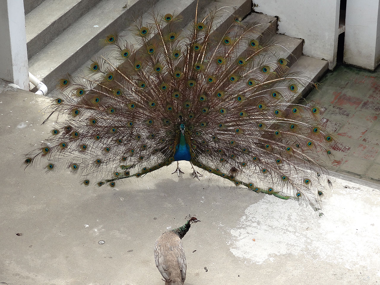 We get a mix of sun, rain and storms, watch the water levels of the river rise and fall dramatically, watch the peacocks conduct their elaborate mating rituals and watch the monkeys, rabbits, guinea pigs, chatty parrot and tortoises wander freely around the hotel and often follow us inquisitively making the kids quite nervous after the Lara waterslide incident!