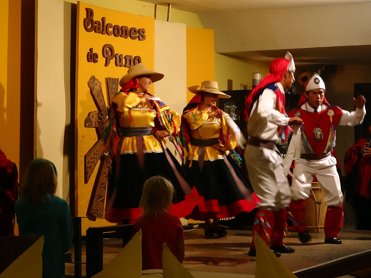 The girls get up close to enjoy dancing at Balcones de Puno restaurant