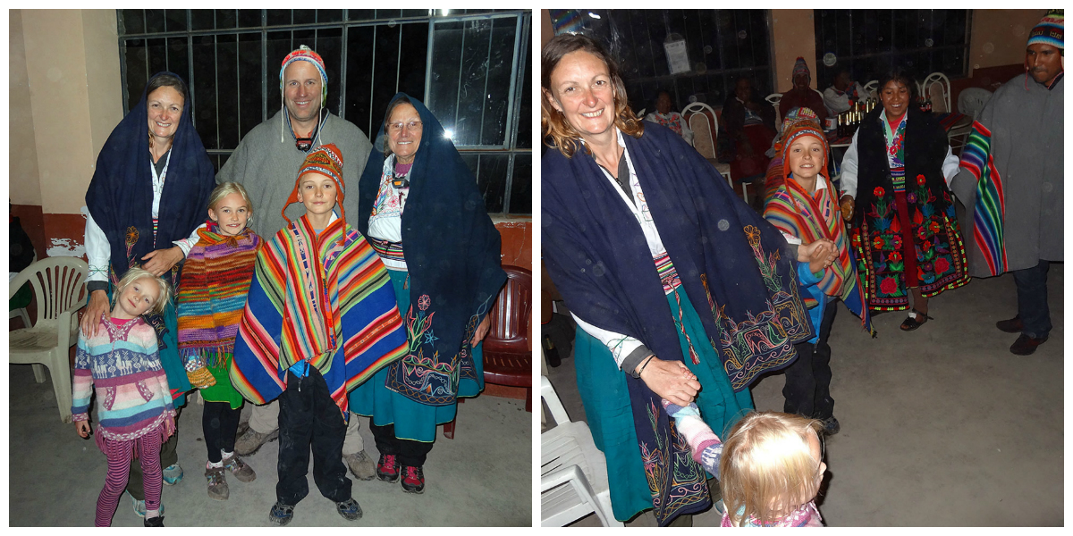 Feeling rather silly, we enter into the spirit and get dressed up in traditional Amantani dress and go to the dance!