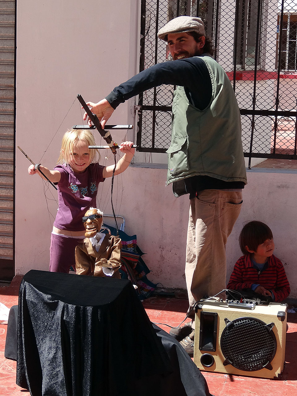 We sit on the main street and sip coffee watching the world go by, chatting to people and the kids watch, and get involved in some street entertainment, we meet a lovely Swiss family, visiting for a wedding and we see the amazing blessing of the cars – people drive their cars here from across Bolivia to have them adorned in flowers, washed in sparkling wine and blessed for safe travels and low maintenance! It is truly a sight!