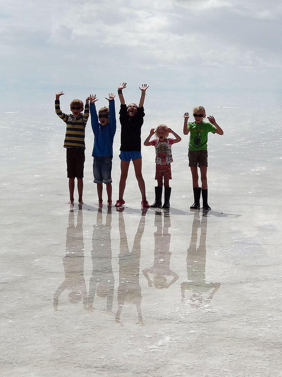 With our friends The Bremners on the Salt Flats – are we on land or in the sky?