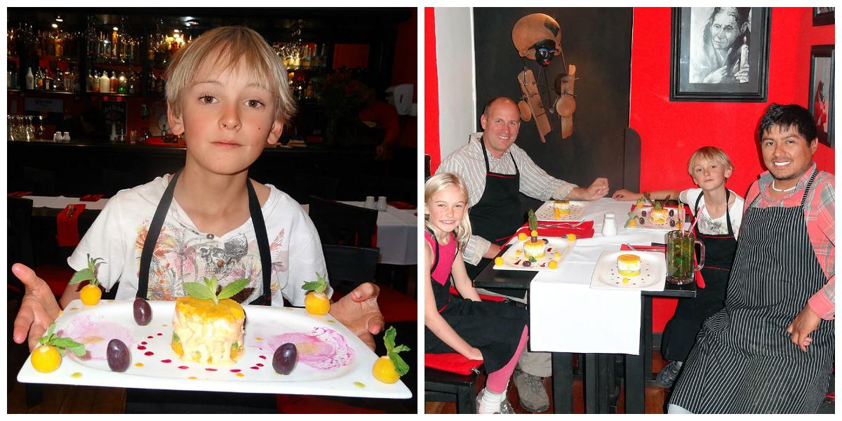 Actually, in the Sacred valley we went to their other restaurant called Blue Puppy, named after their lovely dog who we met at a Christmas too! And while we were there a giant picture of Machu Picchu fell off the wall above me and Mum!! It was going to crash on our heads and I think our heads would have popped through the other side but my Dad saw it and managed to catch it! That made us laugh so much it was an icebreaker to meet another family, half English, half American on holiday from New York with two blonde children our ages – so we chatted to them all evening!! We emailed Elizabeth and told her all about it and sent her the pictures – I think she put them on her website!!!