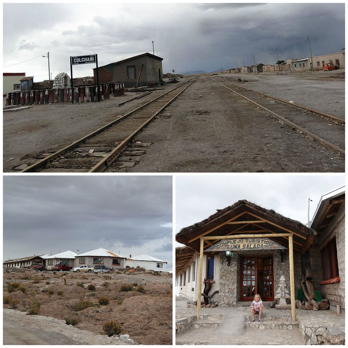 We pass through Colchani, the tiny quiet village in the dust where they process the salt and soon after, in the distance we can start to see the whiteness of salt and some whitish buildings… We bump along, draw closer and are very happy to disembark at the Hotel Luna Salada.