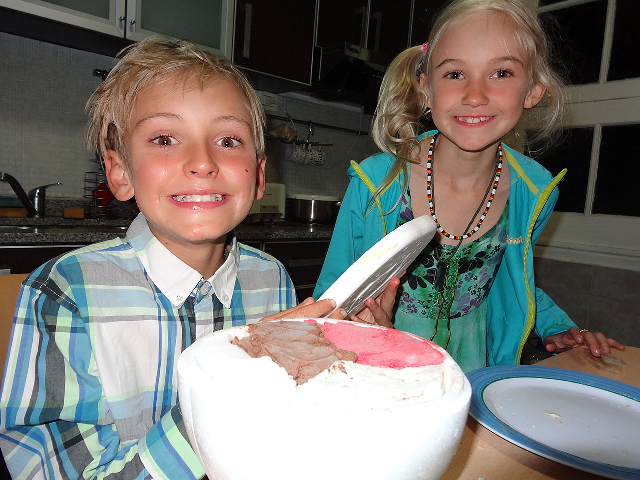 4 March 2013. Home for the day again. Martin needs to spend a few hours working, the kids play, I’m searching for hotels for our next few stops… In the evening we head out to a local restaurant but its closed so we head home for frankfurters, crisps, wine, movie & huge tub of gourmet ice cream from the store where you buy it in litres!
