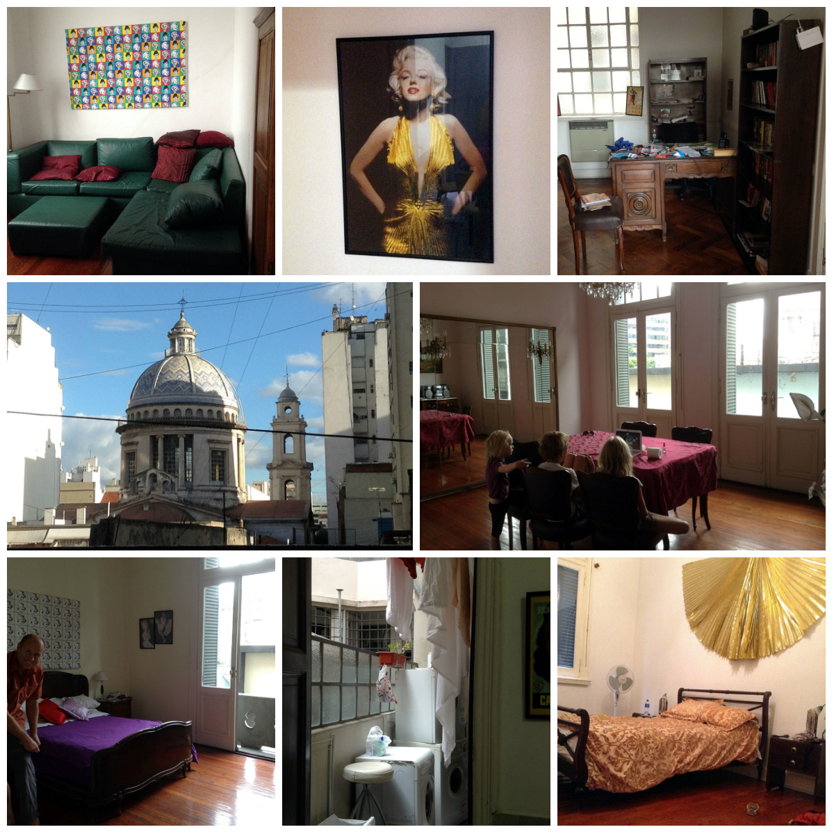 We get a cab to the apartment we’ve booked and meet Maggie who is renting it to us. It’s in a lovely old building with old fashioned lift. The kids think it’s amazing and the apartment is gorgeous. High ceilings, balconies, overlooking a church dome a little like St. Paul’s cathedral in miniature, three bedrooms and a huge dining room with floor to ceiling mirror (it sometimes doubles as a Tango dancing room!) and pictures of Marilyn Monroe everywhere:)
