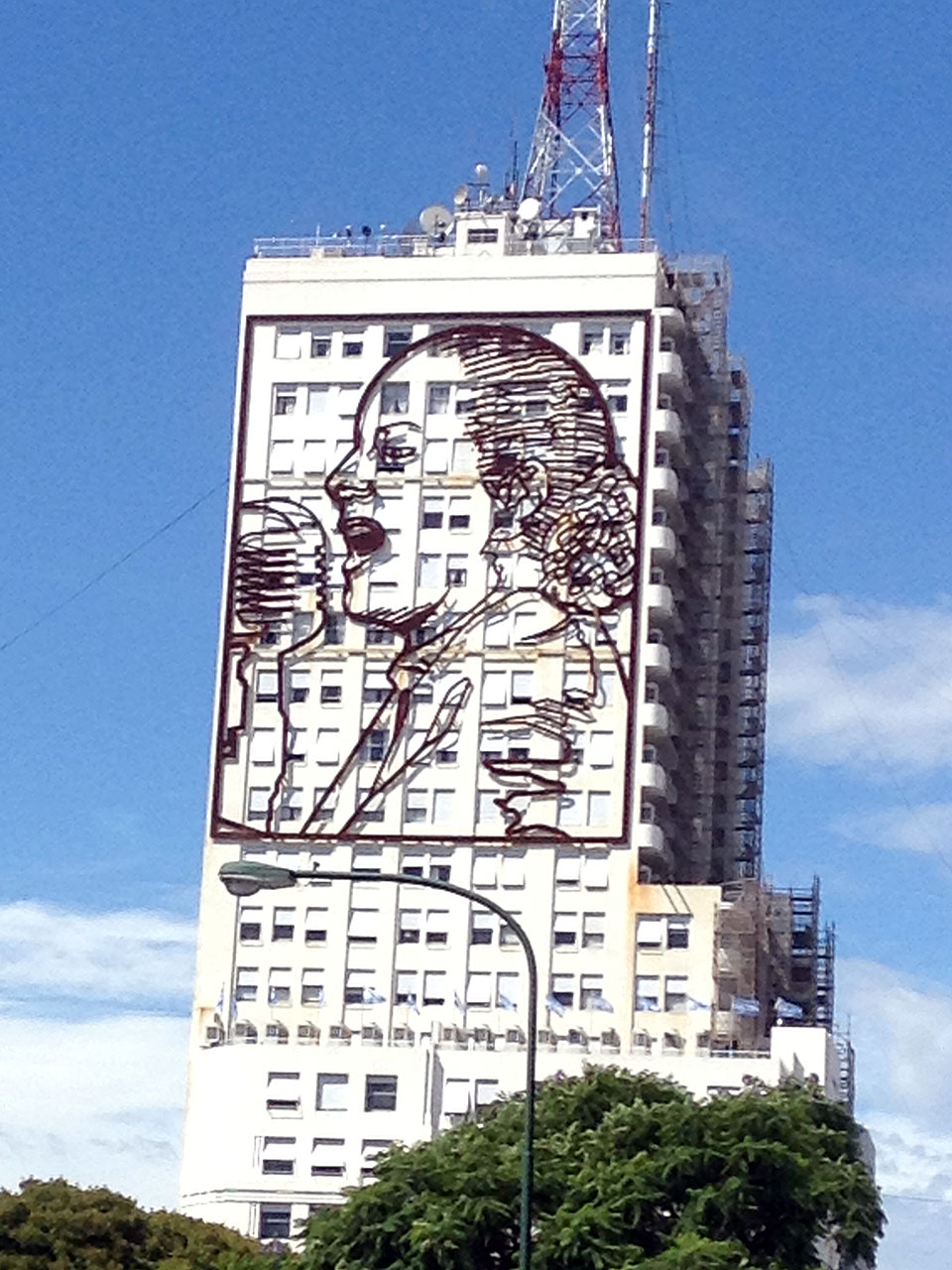 Eva Peron died of cancer in 1952, age 33. Wife of President Juan Peron she worked passionately to support the poor and left an indelible mark on the city of Buenos Aires. We are reminded of her everywhere. Last year, 60 years from her death, her legend was refreshed with ceremonies, speeches, a candlelit march and exhibitions and the addition of the enormous steel sculptures of her likeness either side of the Health Ministry Building, near where we stayed.