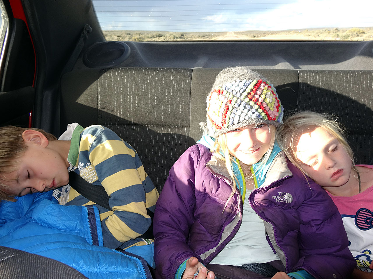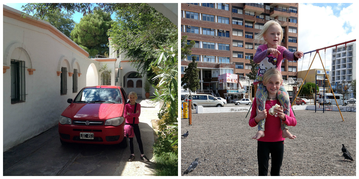 The bus to Puerto Madryn – happy kids before and after the little tantrum! Butter wouldn’t melt in her mouth?