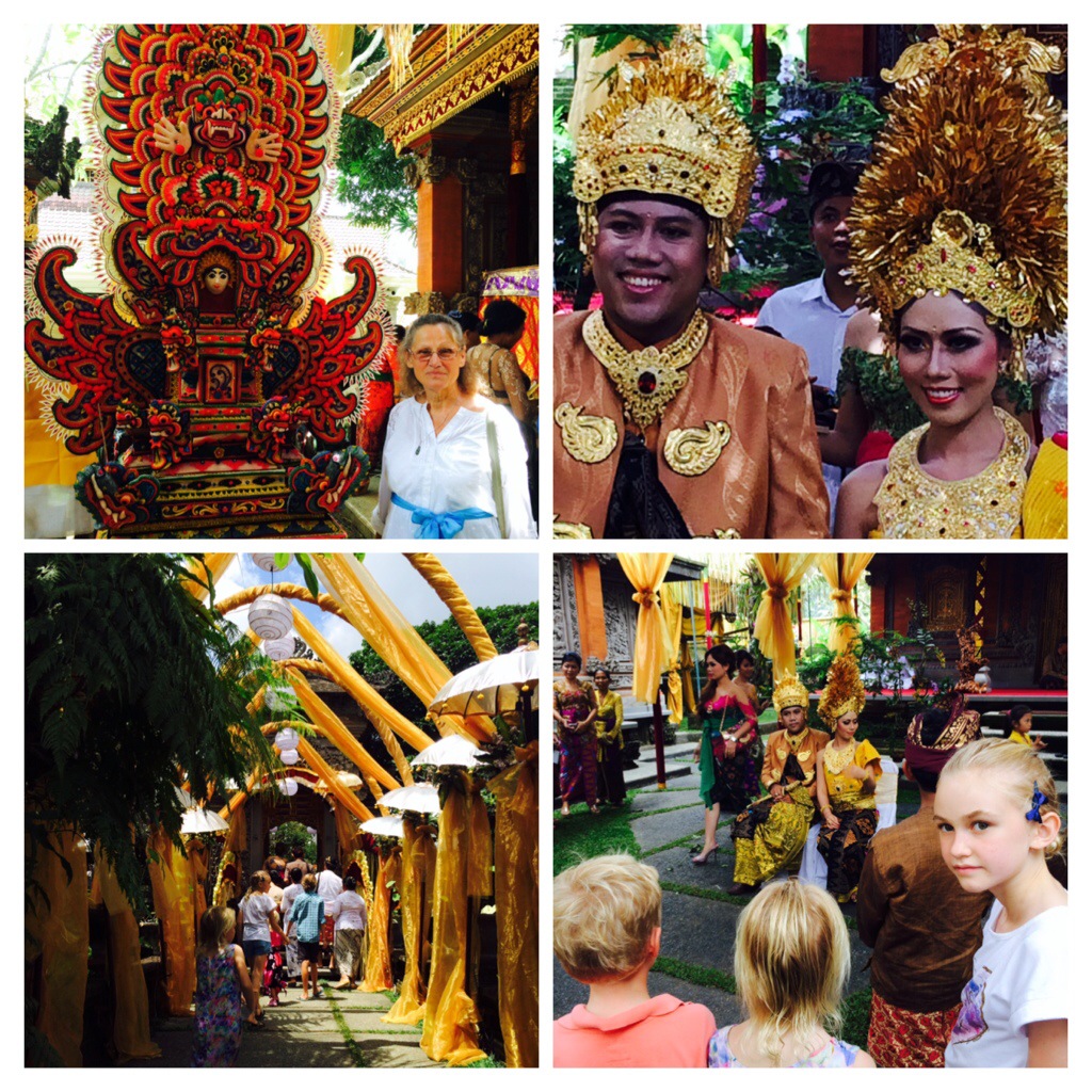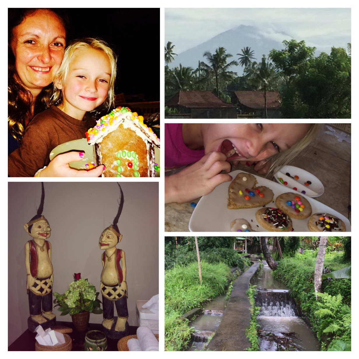 We have a fun, shared 6th birthday party for Lara and Merle, we attend a spectacular up-market local wedding, invited by Angel, we learn more about Bali Hindu (Ben says he’s decided if he were to follow a religion this is the one he’d choose,) we enjoy fabulous food – ranging from the amazing raw organic salads at Alchemy, to the amazing Kue chocolate cafe nearby, to our favourite Rouge sushi bar – think Bali meets Hollywood meets Japan, to our favourite to a fab 7 course tasting menu outing sans-kids (Oma babysitting, took the four kids to Taco Casa, another fave) at Mozaic with our new buddy who’s also a travelling Mum and our kids’ new English teacher!