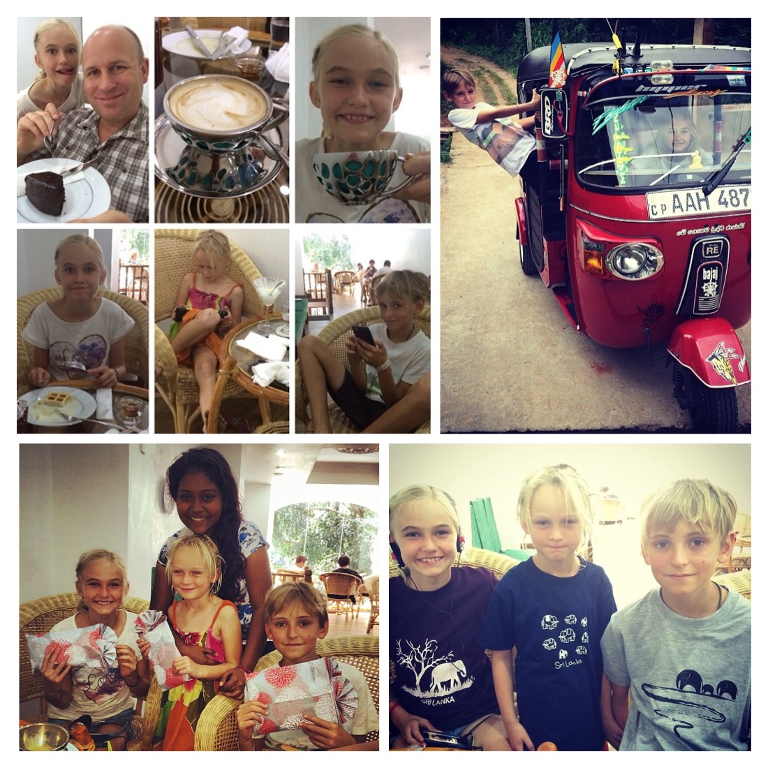It’s a 3 hour flight to Colombo and the time flies almost as fast as the plane! On arrival, after a comical delay, as Martin gets taken off for questioning when his name pops up on the Interpol list. He`s rather glad to be released pretty quickly and our two families head our separate ways. We meet up again several times during our two weeks stay – it’s so much fun spending time together, the kids always asking ‘Will we see the Pearces today?’