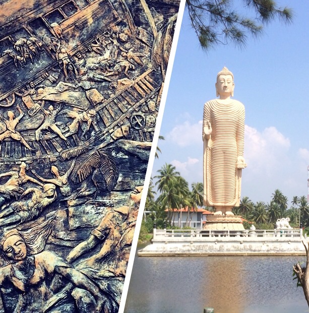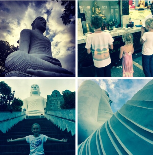 The 2004 Boxing Day Tsunami hit hard here and Martin and I see alot of the personal stories and photos during a visit to a little museum. The images are harrowing and we’re glad the kids stayed at the beach. This is the close up of the huge stone above a mass grave for the 1500 souls who died on a train – many jumped aboard trying to escape when it was engulfed by the wave. In all around 50,000 died here, the Buddha memorial remembering those lost, built on the spot where the train was lost.