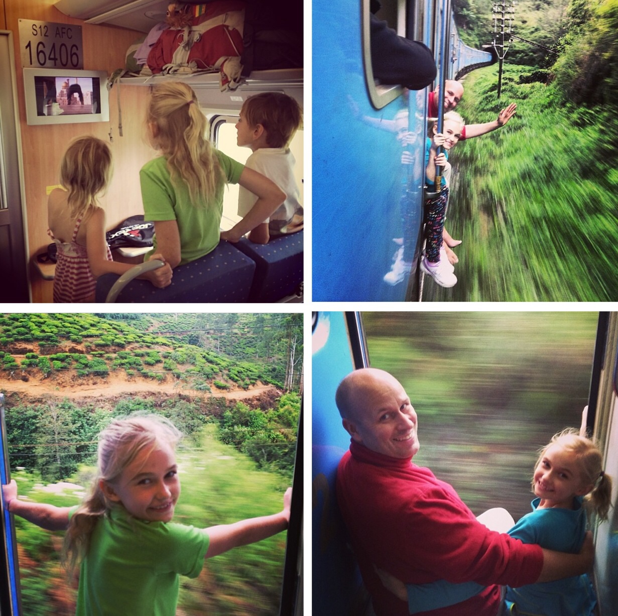 Next day, we hop on the train and enjoy the wonderful winding railway trip into the mountains and through the tea plantations to Nureya Eliya. Well, Martin and I do, the kids enjoy the movie they show in first class!!