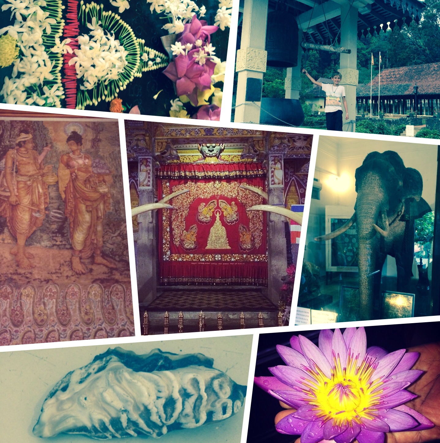 The Temple of the Tooth, the Buddha’s tooth is housed behind the ornate doors, the famous elephant and his tooth are on display, with painting of the Prince and Princess who brought the Buddha’s tooth relic to Sri Lanka, flower offerings and th water lily, national flower of Sri Lanka