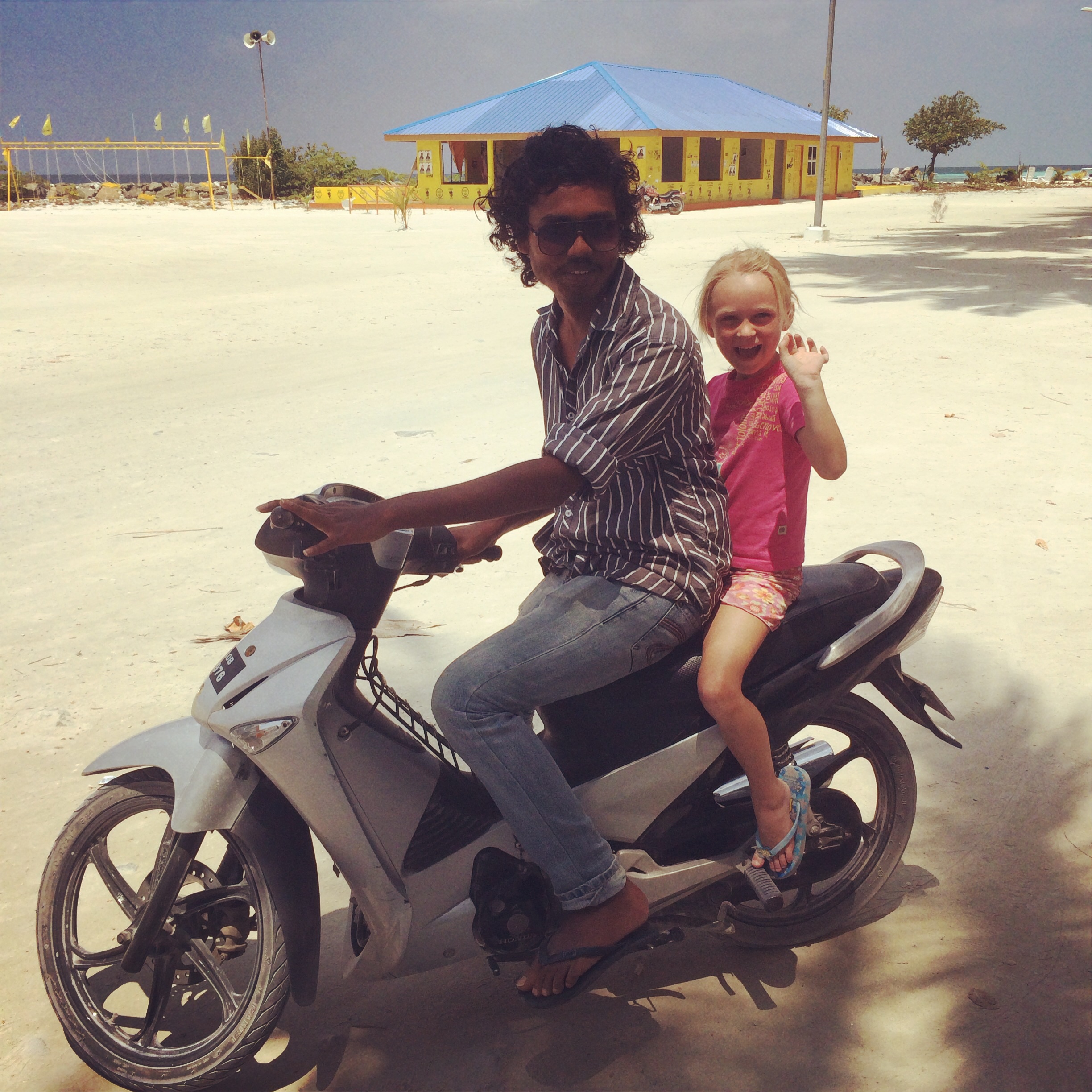 But we are soon back on a boat, waving goodbye to our island hideaway and friend from Maafushi Inn who gives Lara a quick spin on his bike while we wait, and two hours later reunited, with one last night together, another fantastic Thai meal in Male City, and then were off to hop back across islands to the airport and our flight to India!