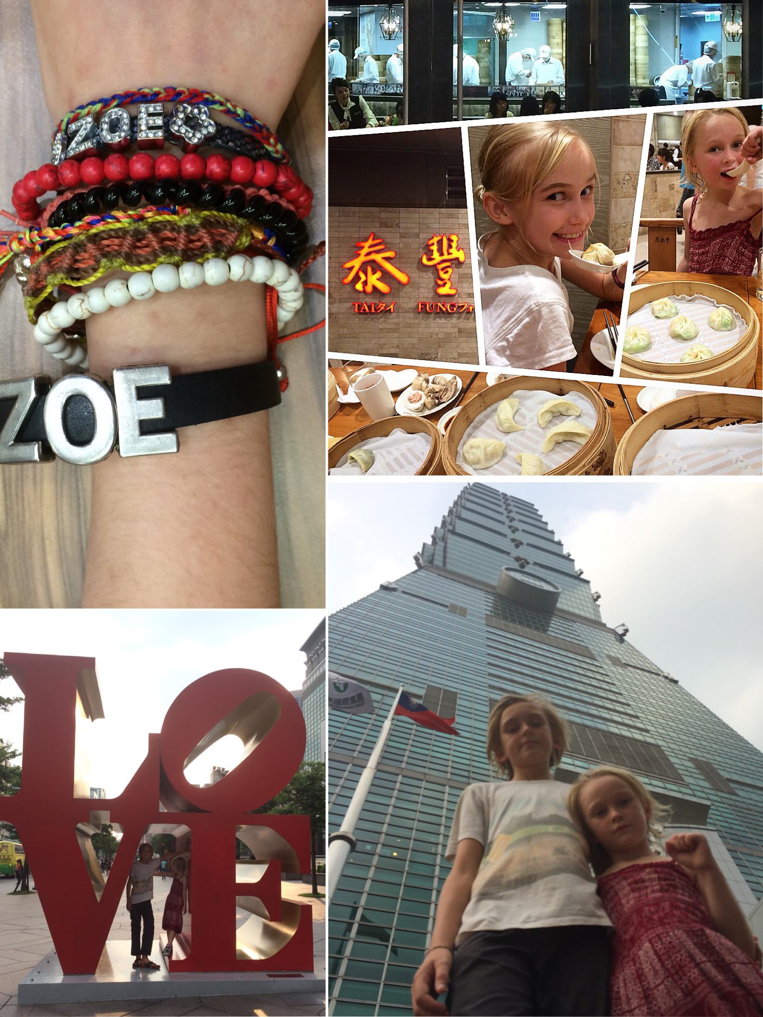 Taipei this week, Zoe’s building up her travellers bracelet look, the most amazing dumplings ever, sibling love and Taipei 101 – tallest building (and tallest structure) in the world 2004-10, being the first to exceed 500m, before being overtaken by the Burg Khalifa.