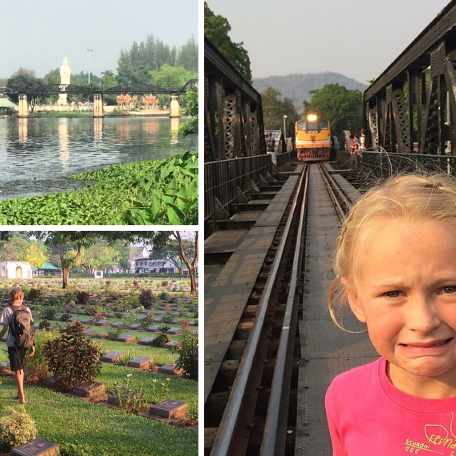 At the Bridge on the River Kwai in Kanchanaburi, Thailand. And the huge WW2 allied graveyard – amazing history lessons here with the Dead Railway story told in the local museum and along with POW sites and graveyards throughout Asia, Australia and the Pacific.