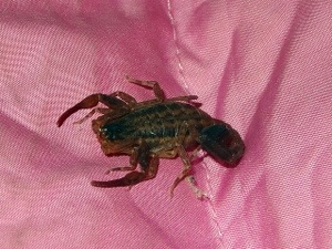 While at Sol y Lunar in Coroico a girl was bitten by a scorpion. She told us it was pretty painful and she had pain and inflammation going up into her arm, so a day or two later when I pick up Lara’s coat that we’d left on the porch overnight and feel a sharp sting in my hand, I was fairly sure it was a scorpion again…
